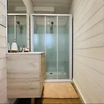 La maison comprend 1 chambre à coucher. Profitez du confort d'une salle de bain dans Appartement Le Refuge de Guilmä, équipée d'un sèche-cheveux et des serviettes. Vous trouverez également une toilette séparée et une douche.